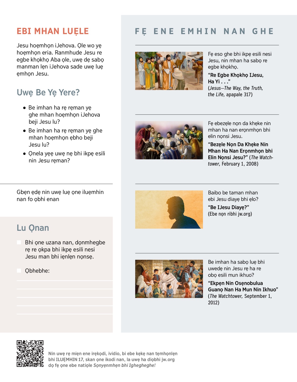Bhi eji mhan tiele nan, be iJesu rẹ rẹman yẹ ghe, ẹmhọn ẹbho rẹtẹ ọle?—Fẹ ulọnlẹn 31, 34, 41, bi 42 ghe.