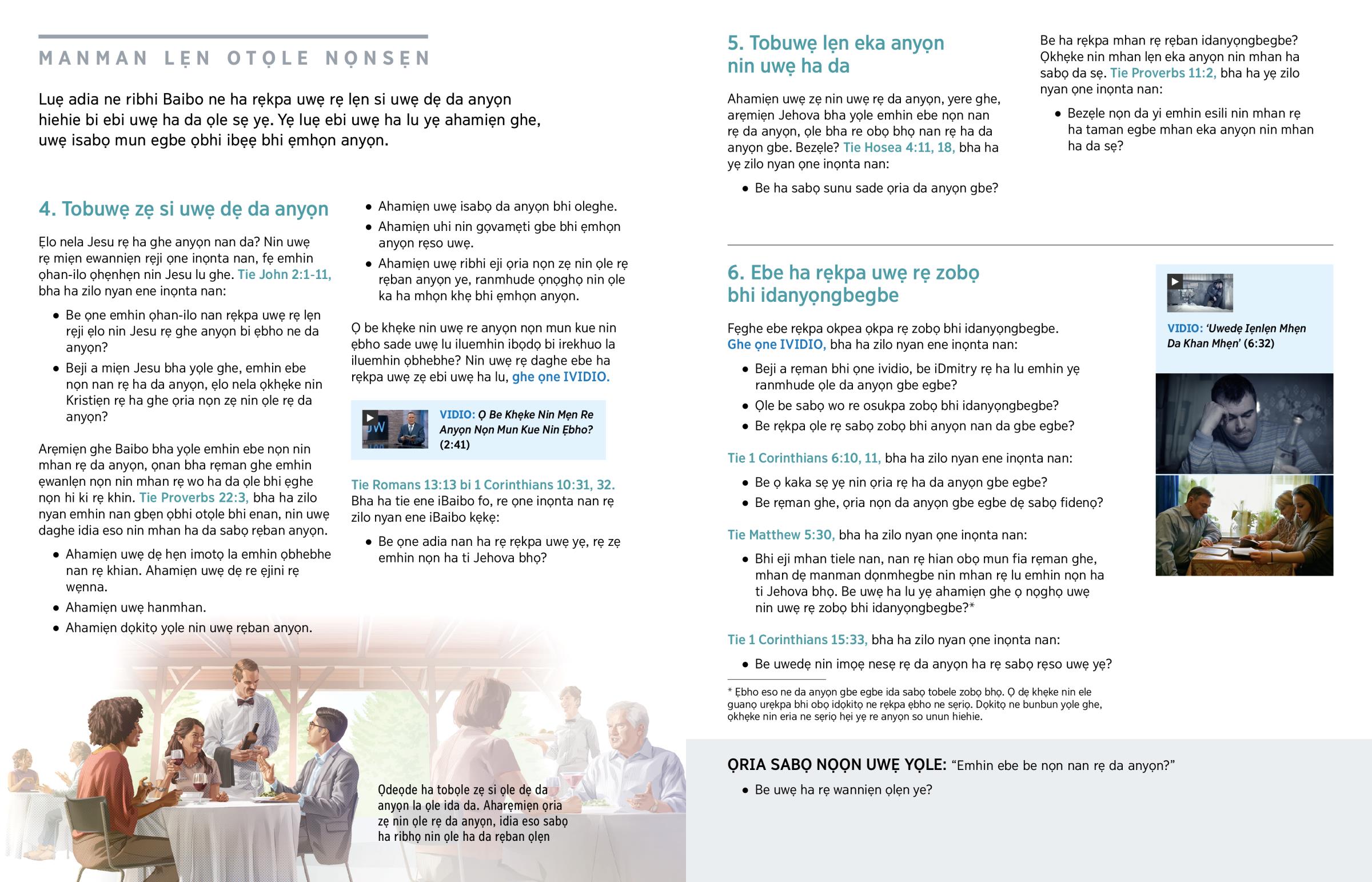 Luẹ adia ne ribhi Baibo ne ha rẹkpa uwẹ rẹ lẹn si uwẹ dẹ da anyọn hiehie bi ebi uwẹ ha da ọle sẹ yẹ. Yẹ luẹ ebi uwẹ ha lu yẹ ahamiẹn ghe, uwẹ isabọ mun egbe ọbhi ibẹẹ bhi ẹmhọn anyọn.