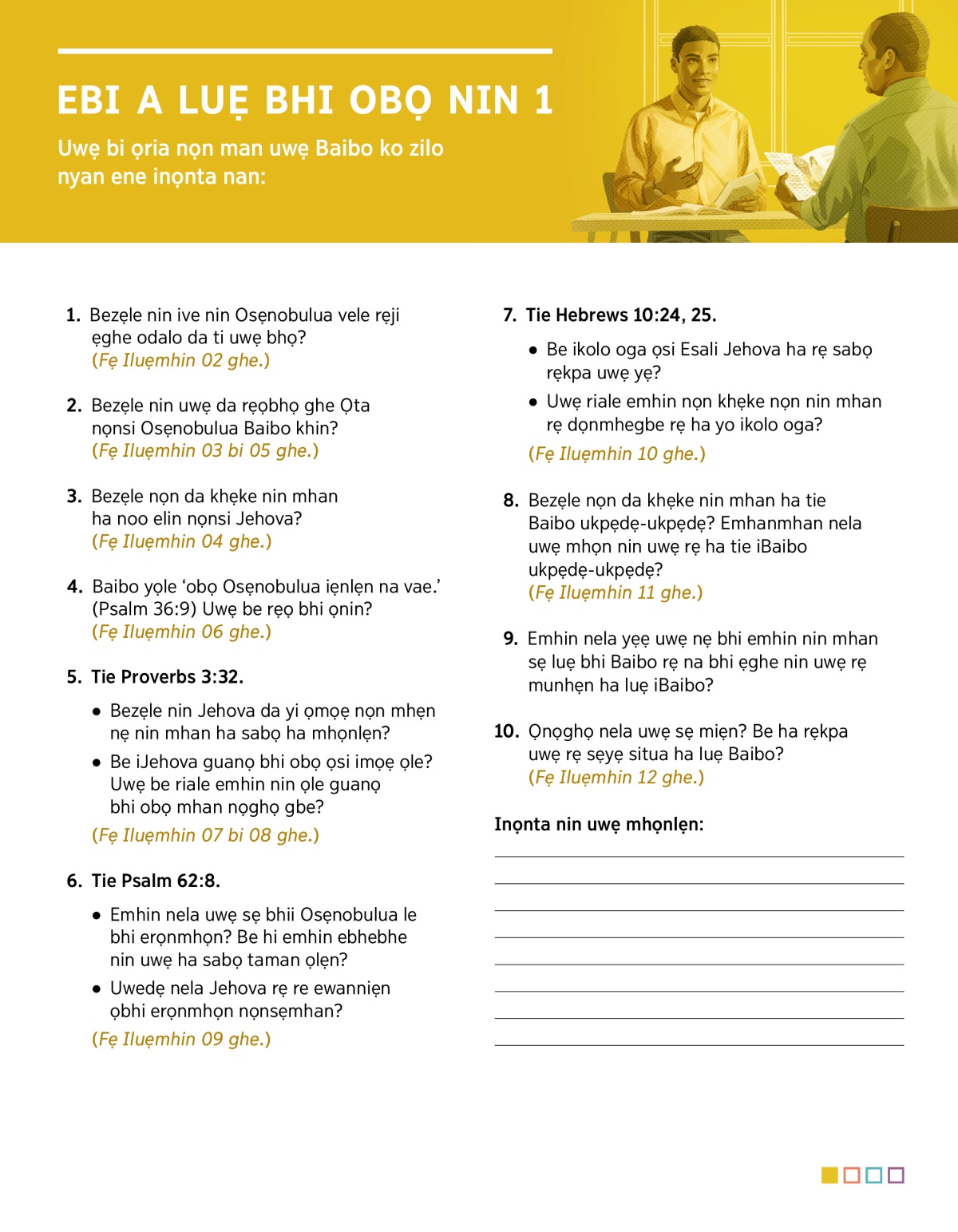 Bezẹle nọn da khẹke nin mhan ha tie Baibo ukpẹdẹ-ukpẹdẹ? Emhanmhan nela uwẹ mhọn nin uwẹ rẹ ha tie iBaibo ukpẹdẹ-ukpẹdẹ?