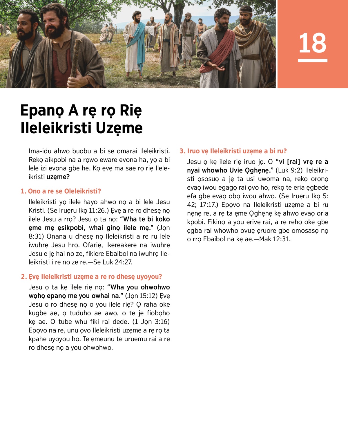 Wuhrẹ kpahe epanọ Ileleikristi uzẹme inẹnẹ a bi ro ru eware nọ Ileleikristi ọsosuọ a ru wọhọ epanọ Jesu ọ ta nọ a te rọ riẹ ilele riẹ.