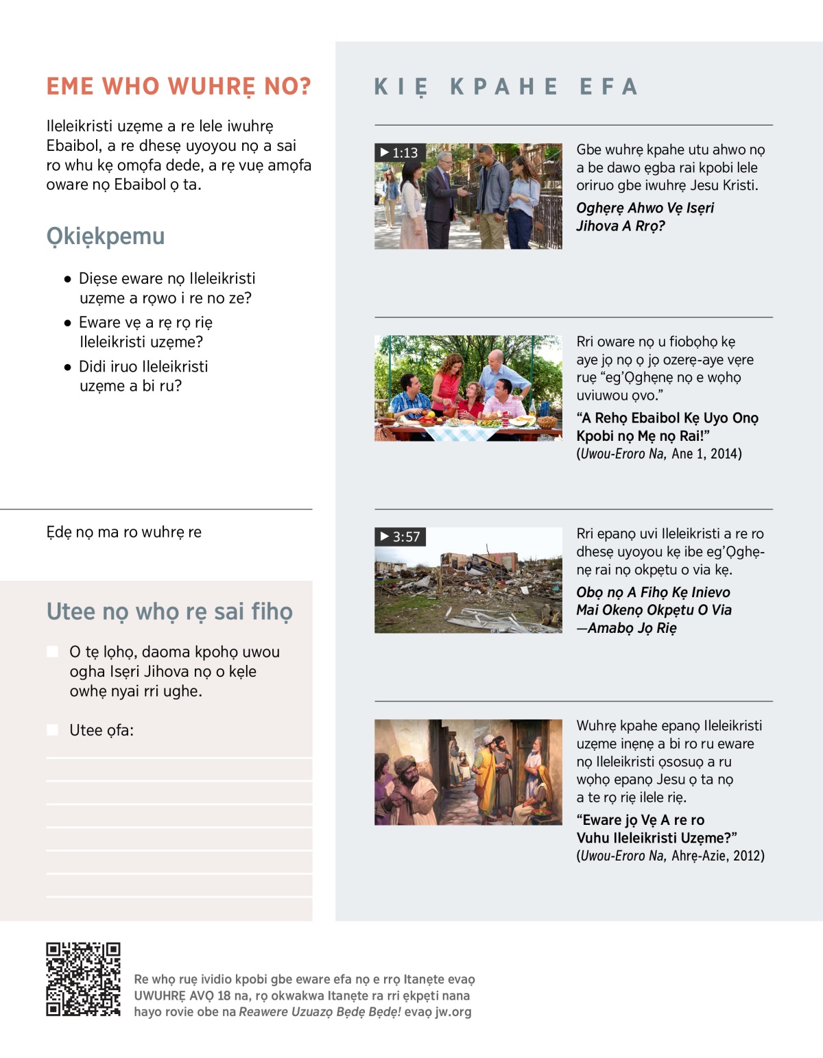 Kọ Ileleikristi jọ a rọwo nọ a re whu fiki ibe Ileleikristi rai no? Kporo IVIDIO na, kẹsena wha vẹ ta ẹme kpahe enọ nọ e rrọ obotọ na.