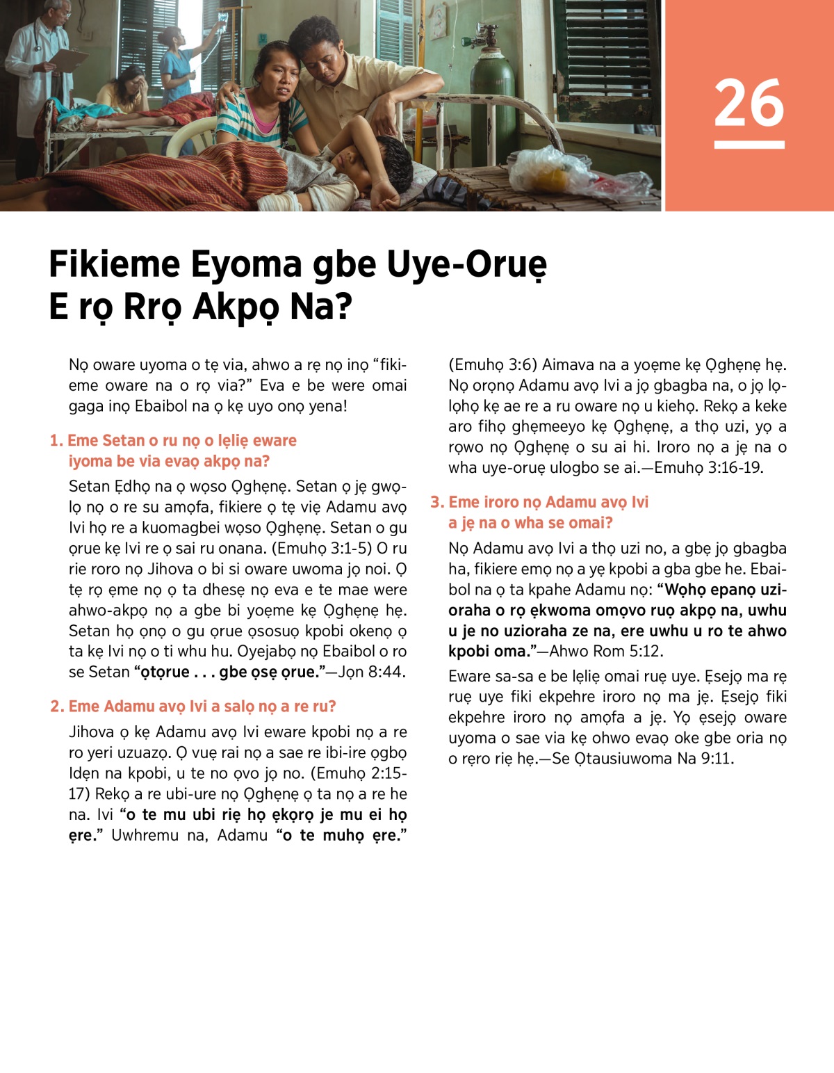 Nọ oware uyoma o tẹ via, ahwo a rẹ nọ inọ “fikieme oware na o rọ via?” Eva e be were omai gaga inọ Ebaibol na ọ kẹ uyo onọ yena!
