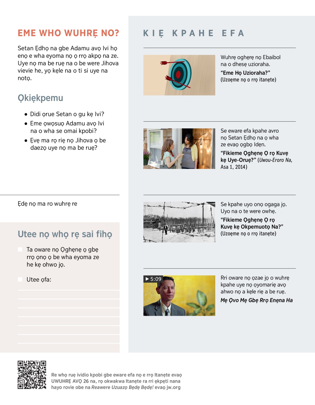 “Fikieme Ọghẹnẹ Ọ rọ Kuvẹ kẹ Uye-Oruẹ?” (Uwou-Eroro Na, Asa 1, 2014)