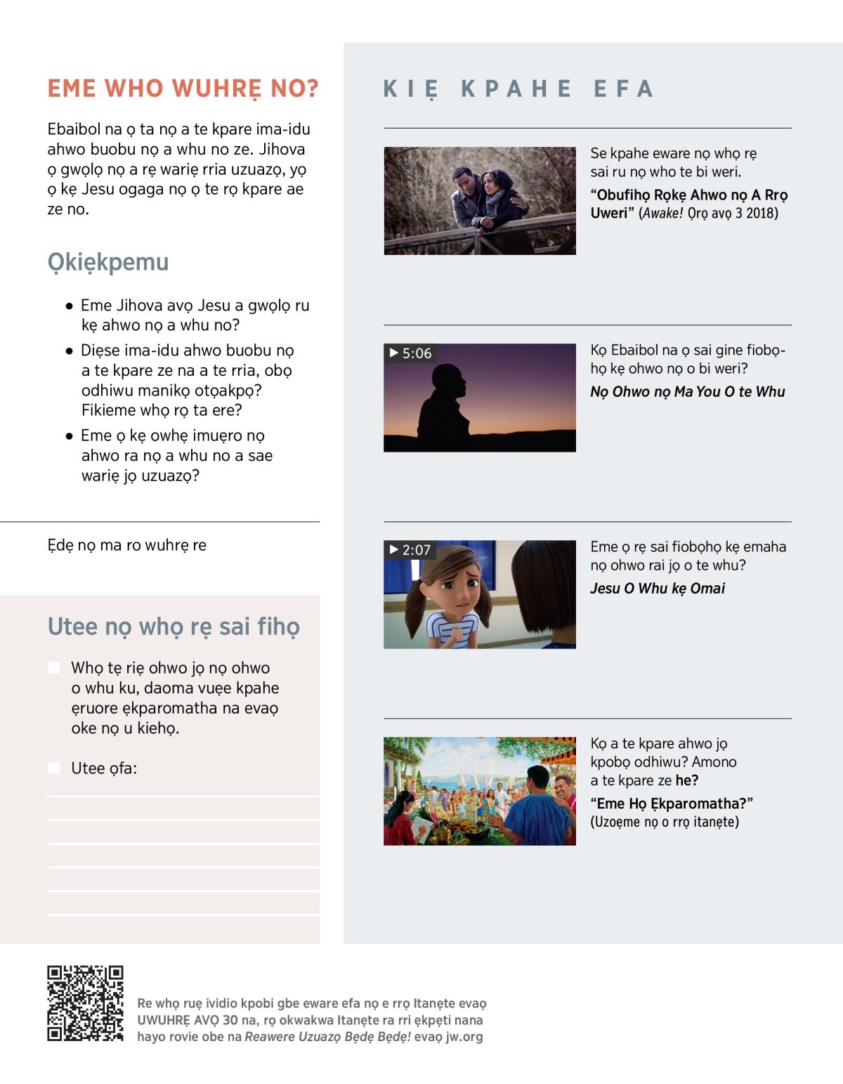 1. Eme Jihova ọ gwọlọ ru kẹ ahwo mai nọ a whu no?