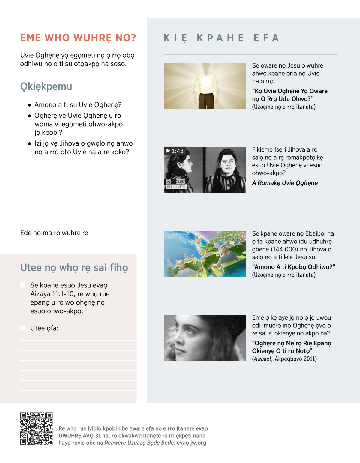 “Kọ Uvie Ọghẹnẹ Yọ Oware nọ O Rrọ Udu Ohwo?” (Uzoẹme nọ o rrọ itanẹte)