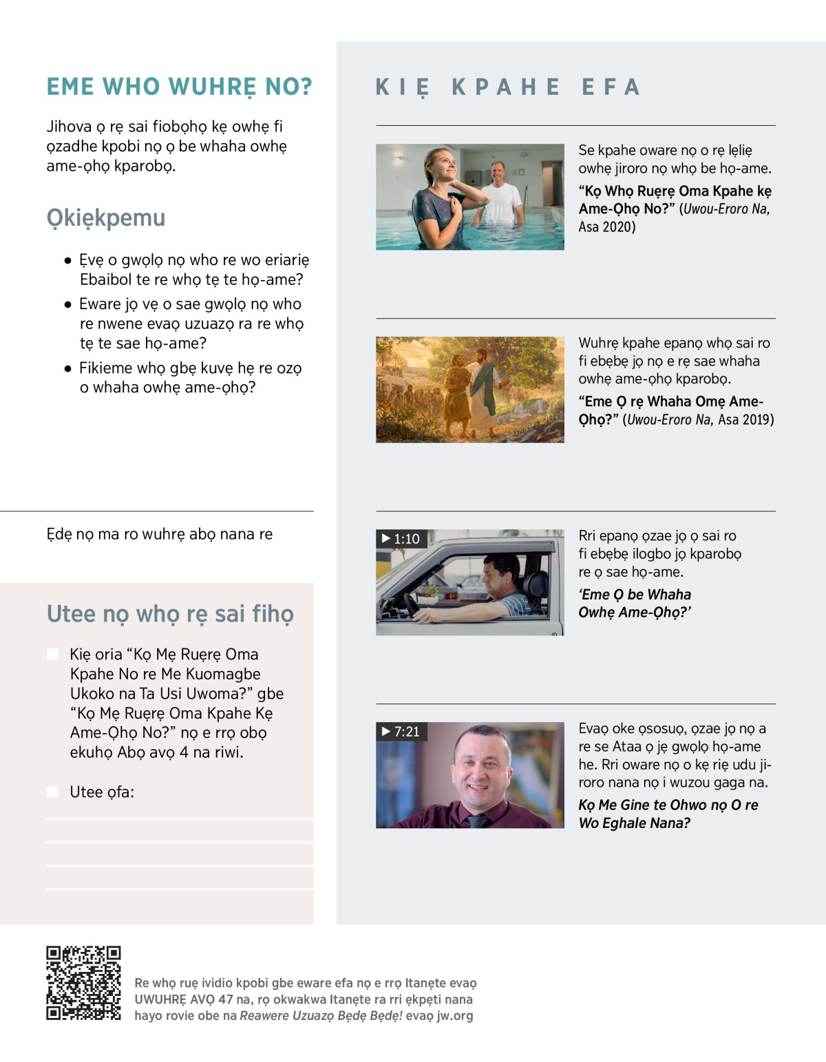“Kọ Whọ Ruẹrẹ Oma Kpahe kẹ Ame-Ọhọ No?” (Uwou-Eroro Na, Asa 2020)