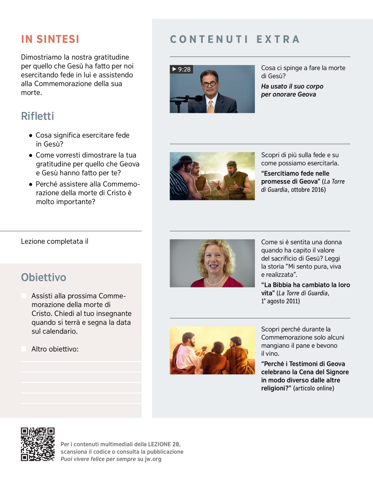 Dimostriamo la nostra gratitudine per quello che Gesù ha fatto per noi esercitando fede in lui e assistendo alla Commemorazione della sua morte.