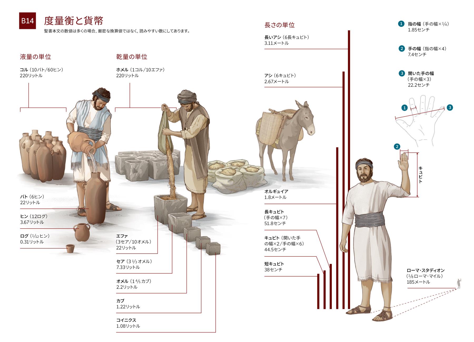 聖書本文の数値は多くの場合,厳密な換算値ではなく,読みやすい数にしてあります。