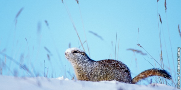 冬眠する動物は,冬眠に入ると,体温が下がります。何度まで下がるのでしょうか。ホッキョクジリスの多くは,その点で記録を打ち立てたようです。体温がなんと摂氏マイナス2.9度まで落ちたのです。体温がそんなに低くなったら脳は凍結してしまう,と予想されます。では,このジリスはどうやって生き延びるのでしょうか。