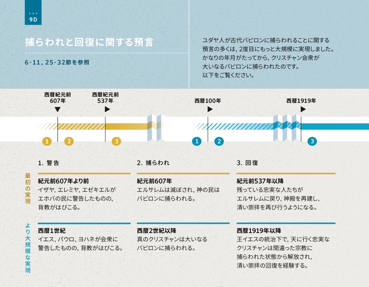 ユダヤ人が古代バビロンに捕らわれることに関する預言の多くは,2度目にもっと大規模に実現しました。かなりの年月がたってから,クリスチャン会衆が大いなるバビロンに捕らわれたのです。以下をご覧ください。