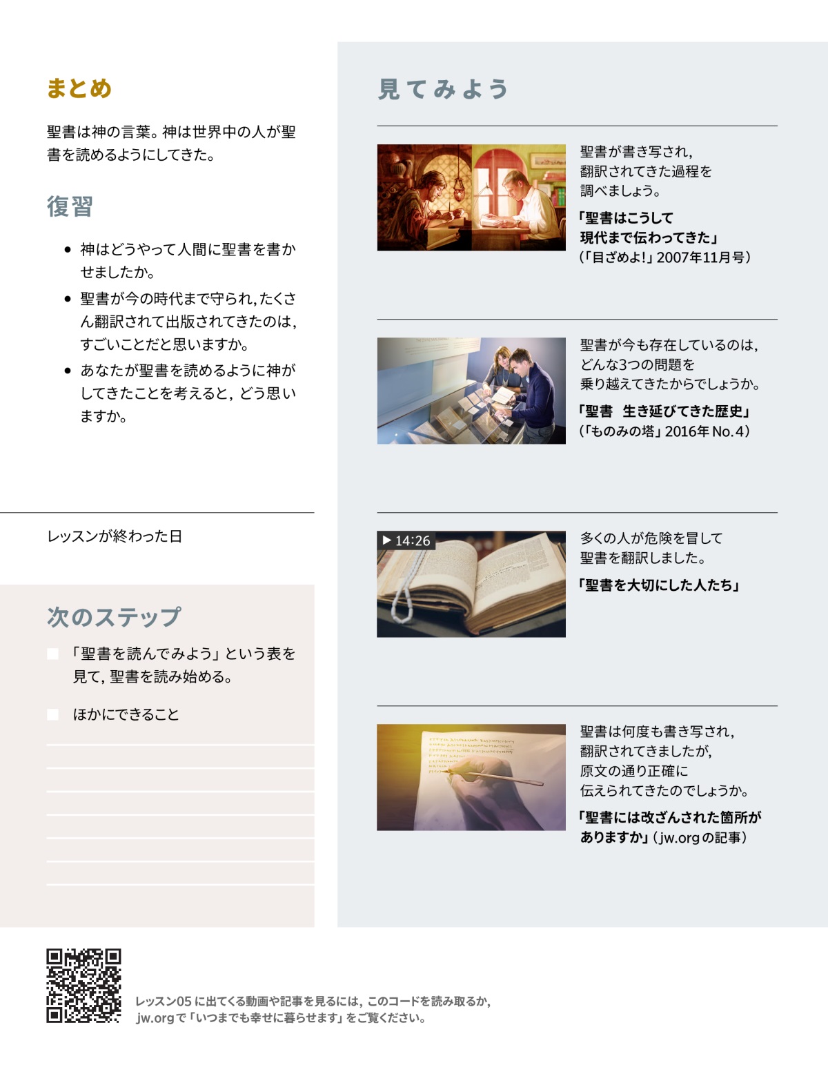 動画を見てください。それからテモテ第二 3章16節を読んで,次のことを考えましょう。