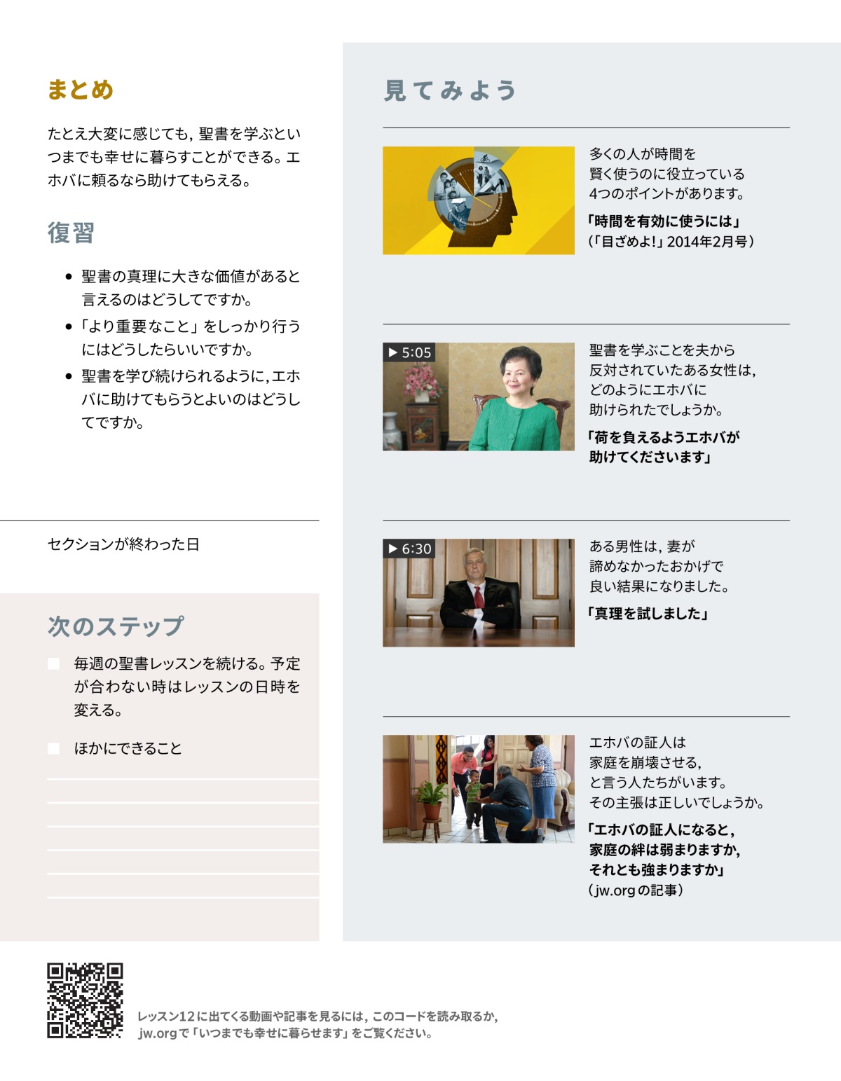 「神の言葉は生きていて,力を及ぼし」ます。(ヘブライ 4:12)聖書を学ぶと,神がどんな考えを持ち,あなたのことをどう思っているかが分かります。大切なことをいろいろ知ることができ,本当の知恵が身に付き,希望を持てます。何よりも大事なこととして,聖書を学ぶとエホバと友達になれます。学び続けると,より良い生活を送れます。