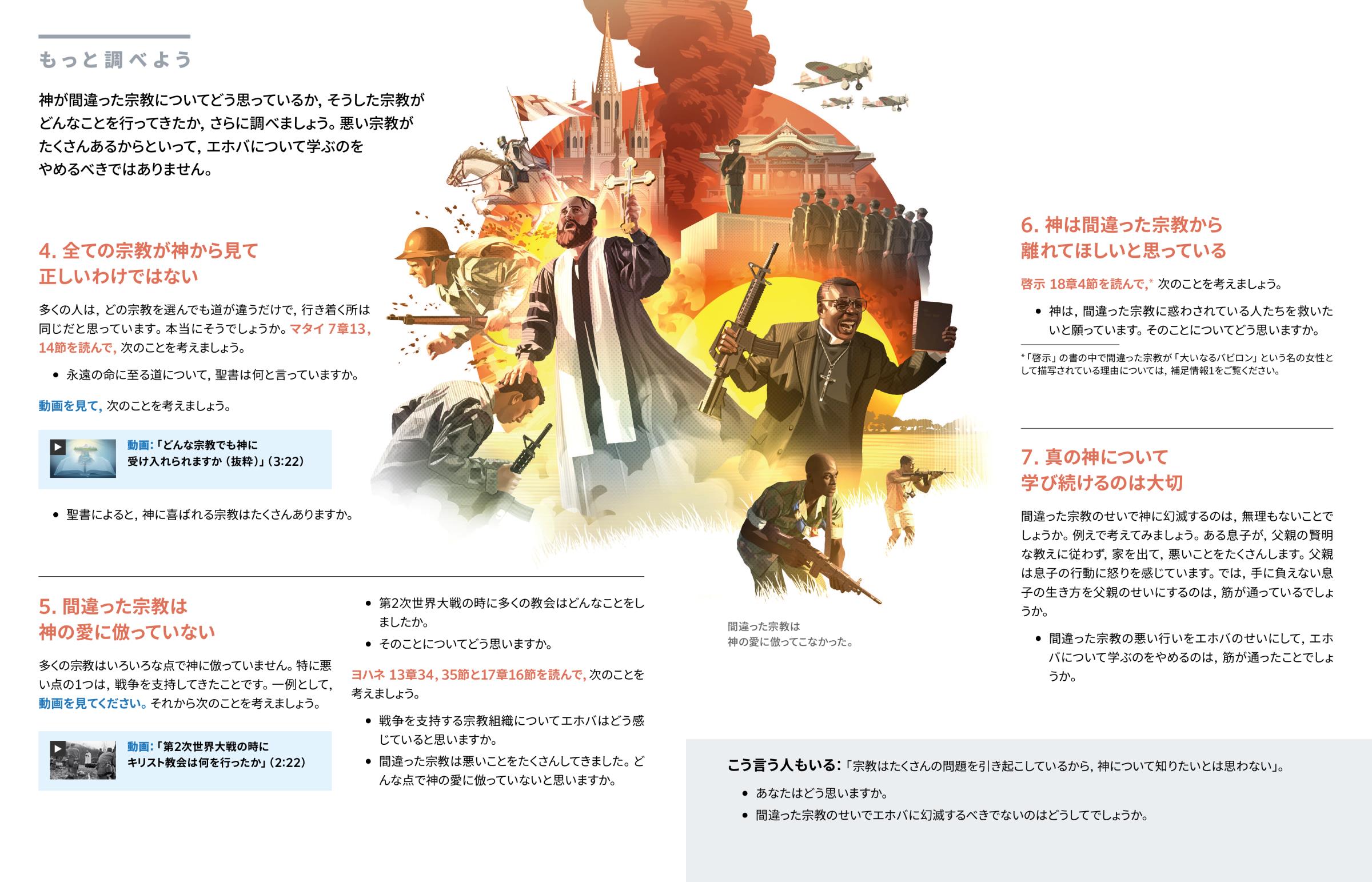 神が間違った宗教についてどう思っているか,そうした宗教がどんなことを行ってきたか,さらに調べましょう。悪い宗教がたくさんあるからといって,エホバについて学ぶのをやめるべきではありません。