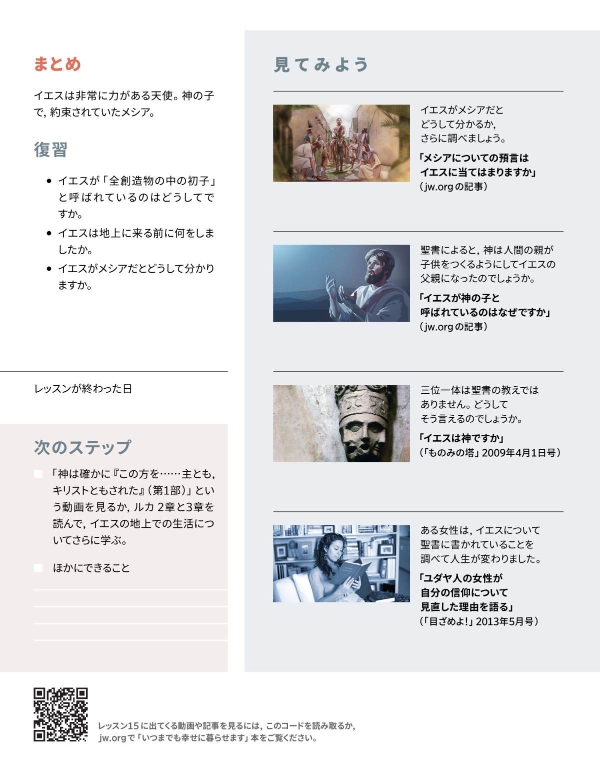 イエスは何者か,イエスについて知るのが大切なのはどうしてか,さらに考えましょう。