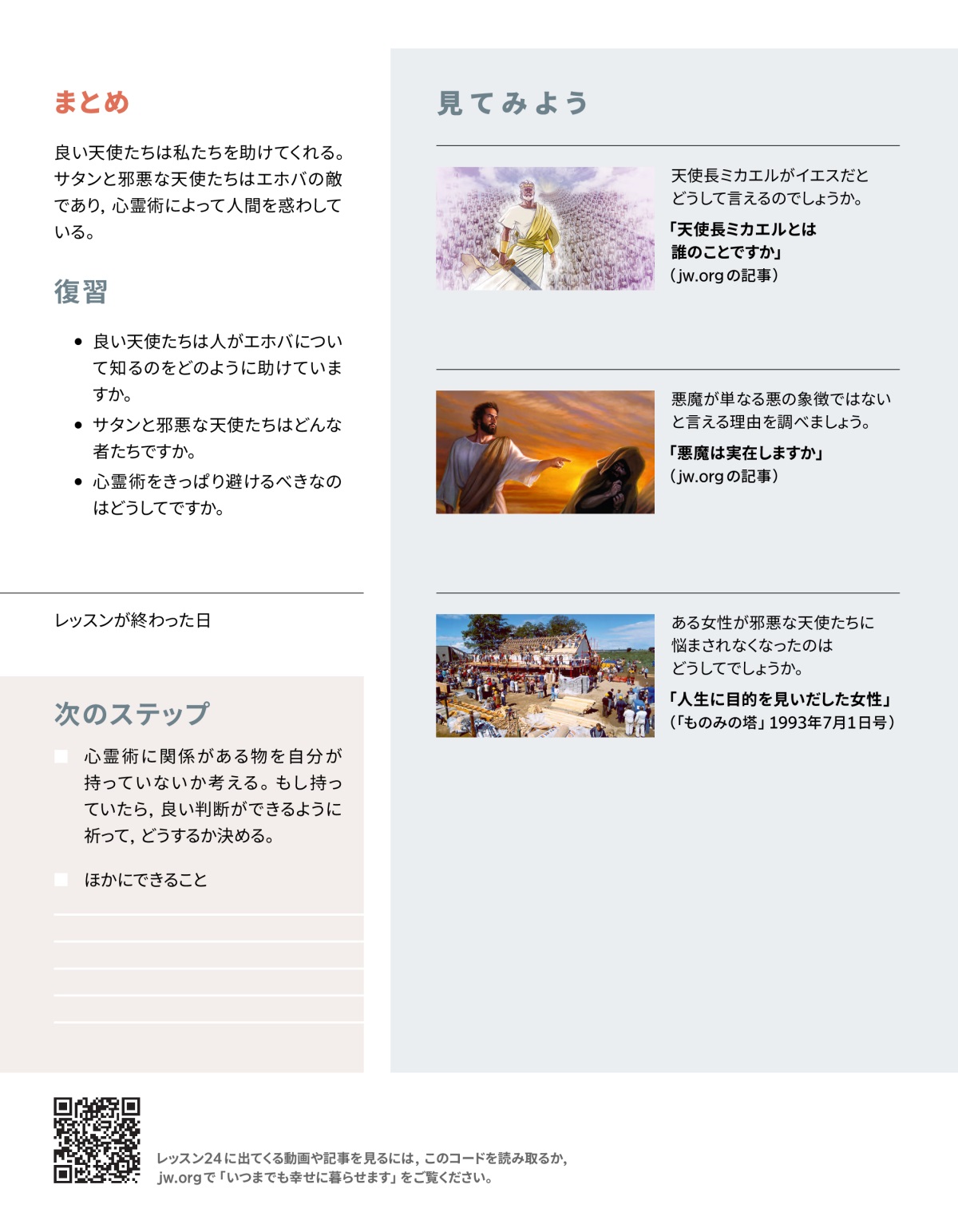 天使たちが行っている良い事柄や,心霊術の危険について,またどうすればサタンと邪悪な天使たちから身を守れるかを考えましょう。
