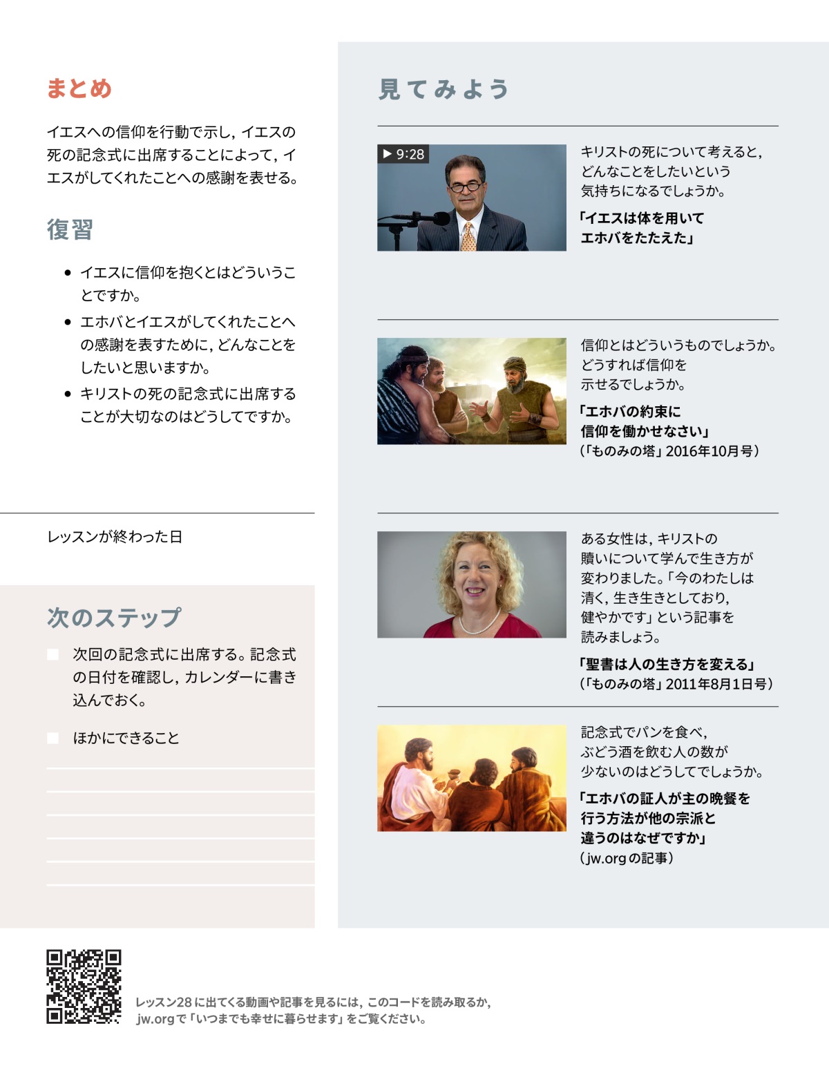イエスへの信仰を行動で示し,イエスの死の記念式に出席することによって,イエスがしてくれたことへの感謝を表せる。