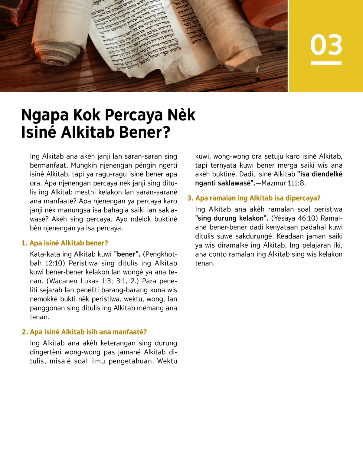 2. Apa isiné Alkitab isih ana manfaaté?