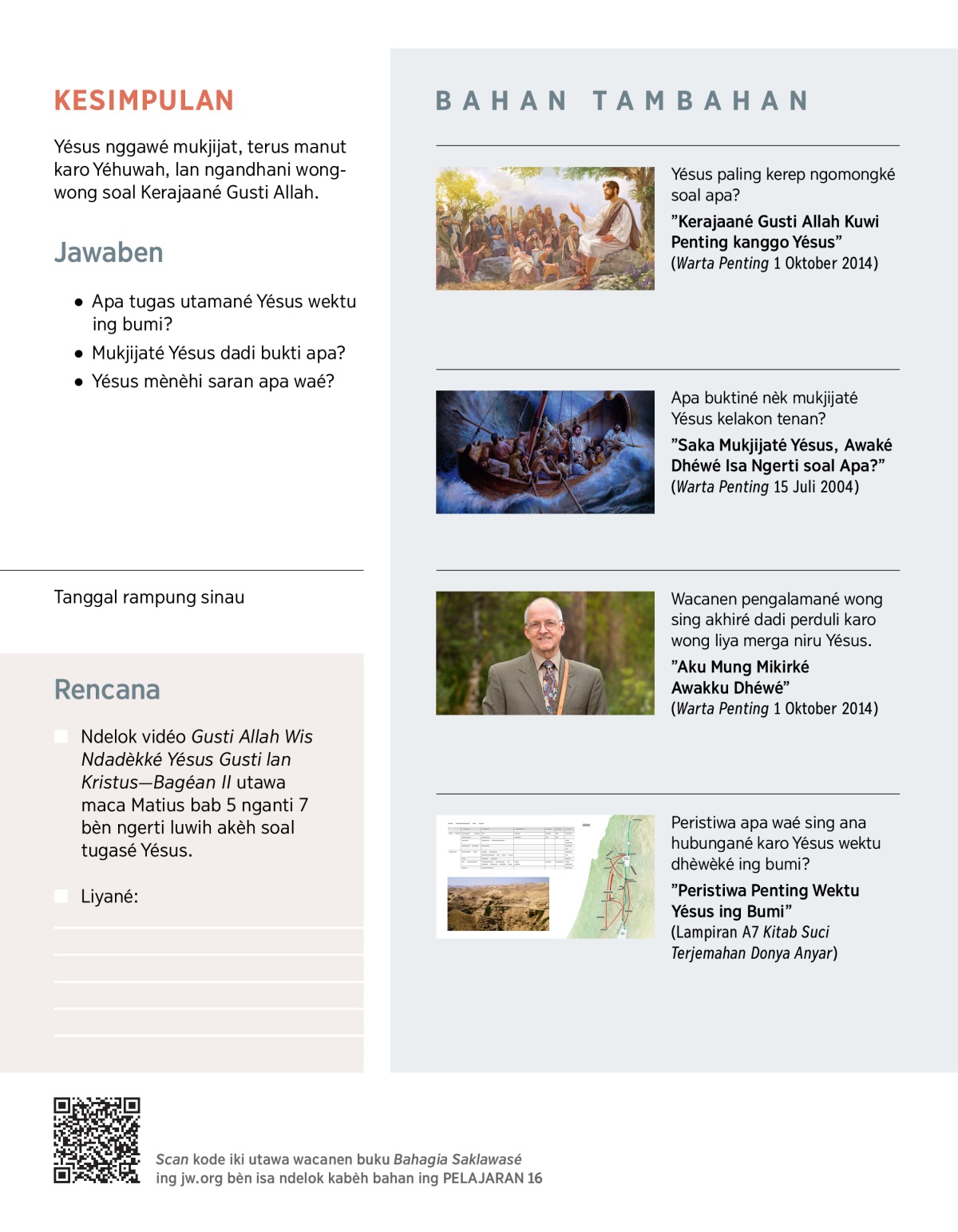 Wektu krungu soal Yésus, ana sing mikir nèk Yésus kuwi mung bayi, utawa nabi, utawa wong sing arep mati. Ing Alkitab ana keterangan luwih akèh soal Yésus wektu dhèwèké ing bumi. Apa waé tugasé Yésus lan piyé carané niru dhèwèké?