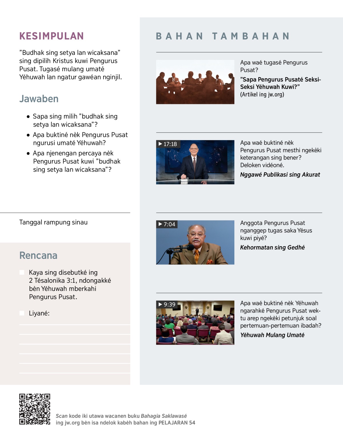 Wacanen Kisah 15:30, 31 lan 16:4, 5, terus rembugen pertanyaan-pertanyaan iki: