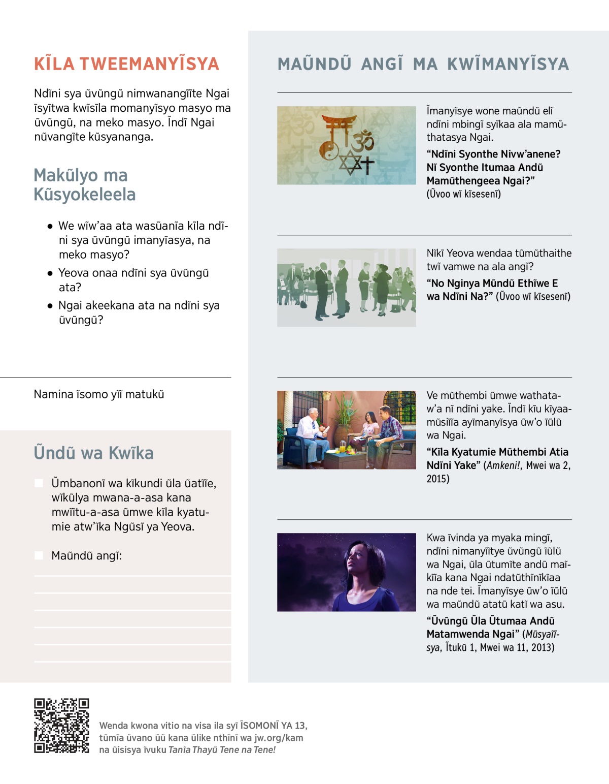 • Wĩthĩwa wĩ ũndũ wosanĩte na kĩlĩko kũmũtũla Yeova mũtĩ na kũeka kwĩmanyĩsya ĩũlũ wake nũndũ wa meko mathũku ma ndĩni sya ũvũngũ?