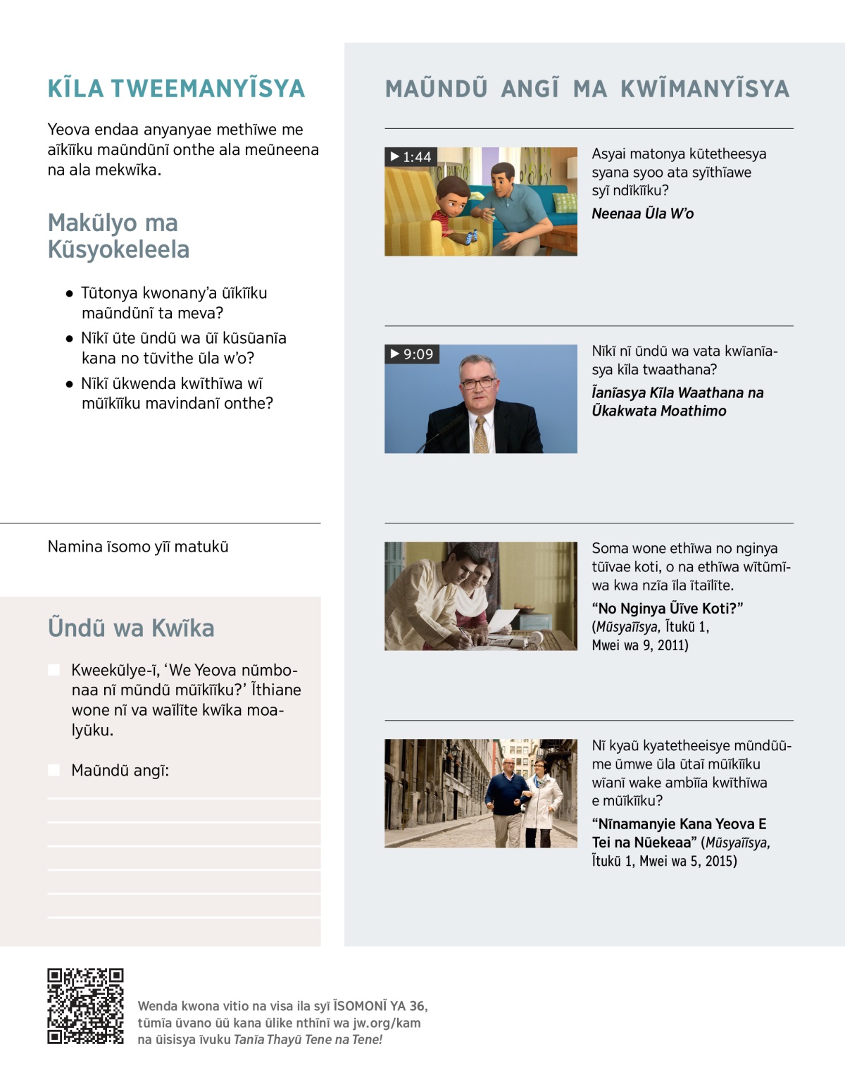 “Nĩnamanyie Kana Yeova E Tei na Nũekeaa” (Mũsyaĩĩsya, Ĩtukũ 1, Mwei wa 5, 2015)
