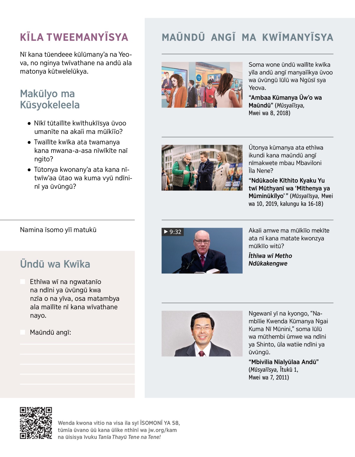 Soma wone ũndũ waĩlĩte kwĩka yĩla andũ angĩ manyaĩĩkya ũvoo wa ũvũngũ ĩũlũ wa Ngũsĩ sya Yeova.