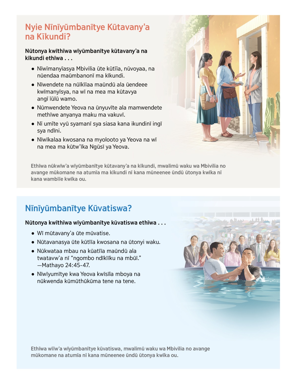 Ethĩwa wĩĩwʼa wĩyũmbanĩtye kũvatiswa, mwalimũ waku wa Mbivilia no avange mũkomane na atumĩa nĩ kana mũneenee ũndũ ũtonya kwĩka ou.
