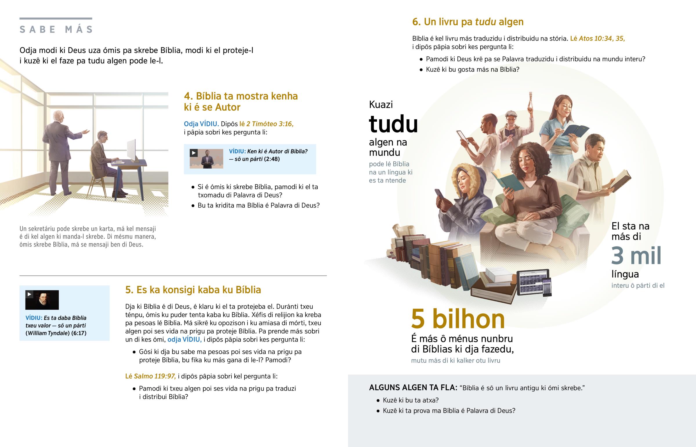 Notísias sábi ki sta na Bíblia pode djuda algen di ‘tudu nasons, tribus, línguas i povus.’ (Lé Apocalipse 14:6.) Oji Bíblia sta traduzidu na más língua di ki kalker otu livru. Kuazi tudu algen na mundu pode lé Bíblia, ka ta nporta undi ki es ta mora ô ki língua ki es ta pâpia.