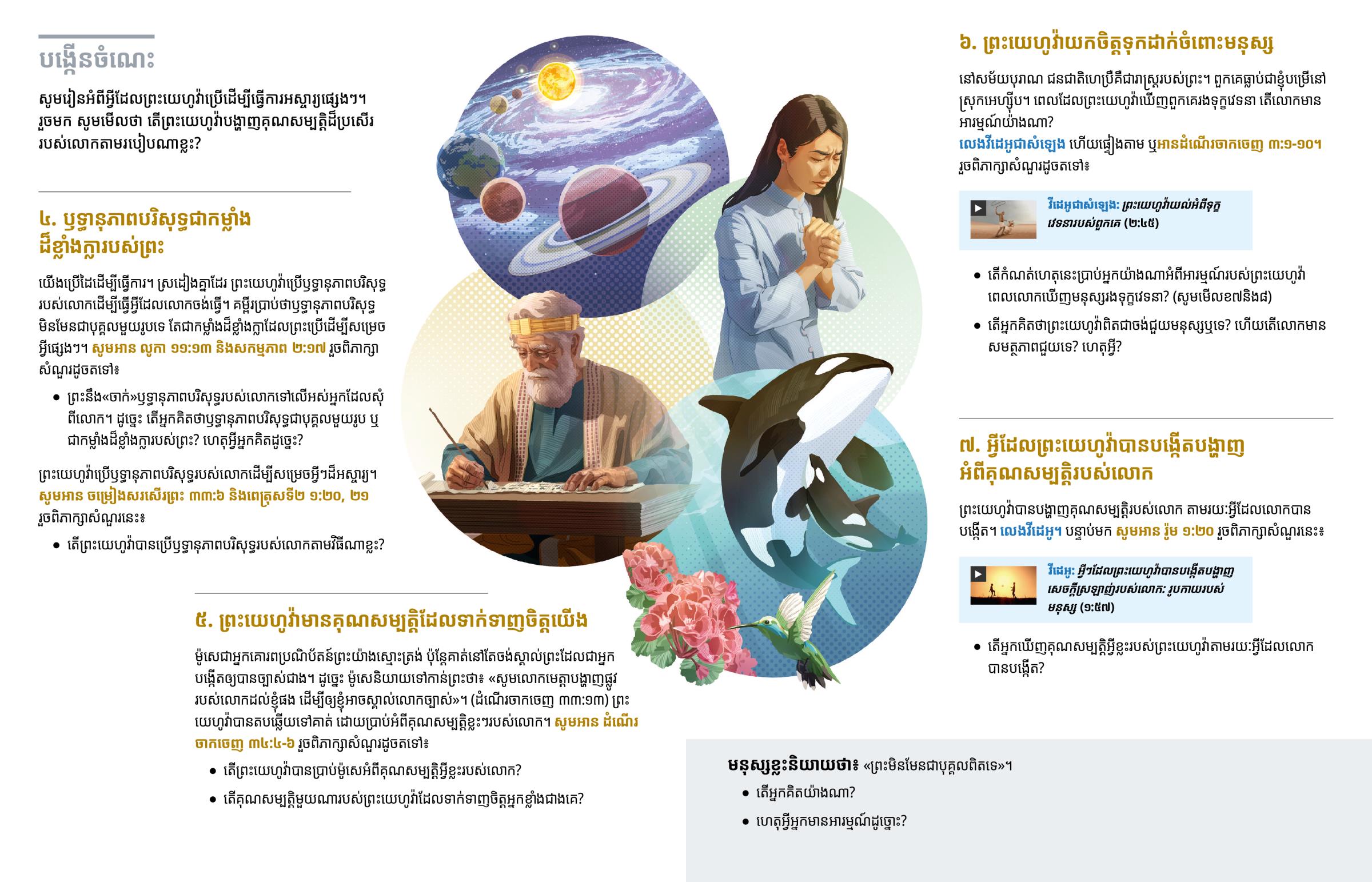 សូមរៀនថែមទៀតអំពីគុណសម្បត្តិដ៏សំខាន់បួនរបស់ព្រះយេហូវ៉ា។