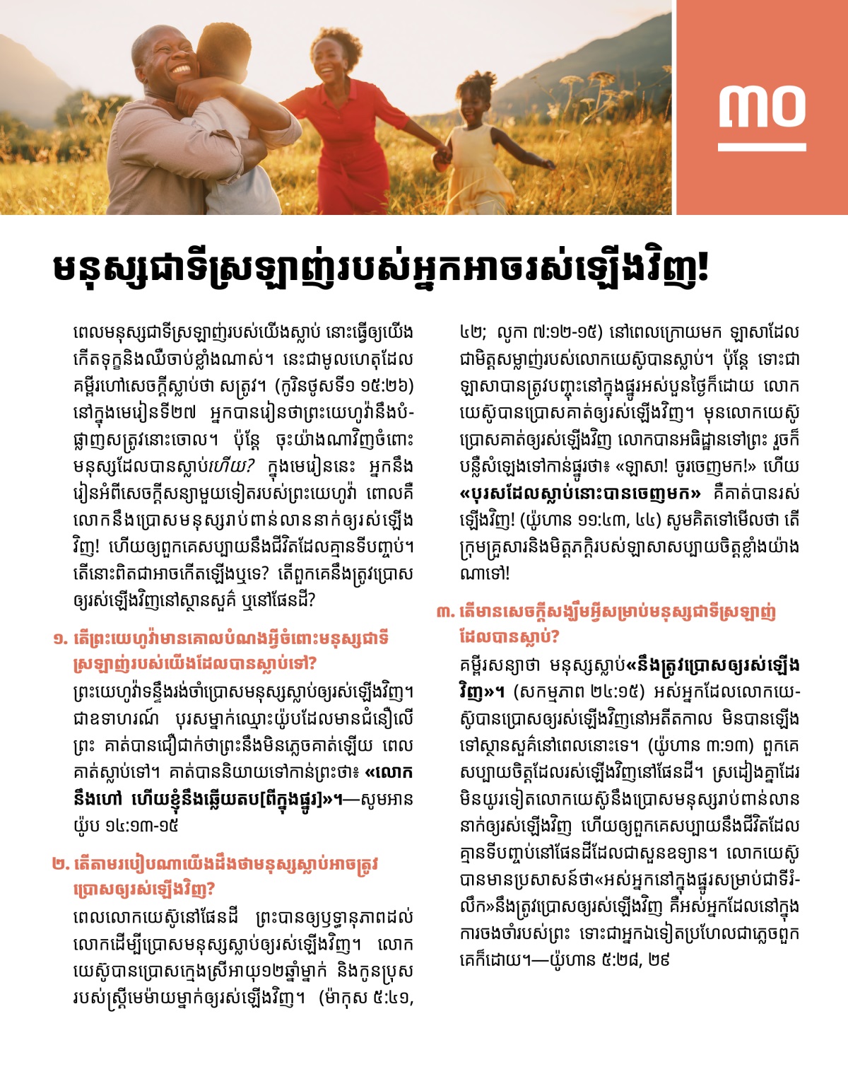 ៣. តើ​មាន​សេចក្ដី​សង្ឃឹម​អ្វី​សម្រាប់​មនុស្ស​ជា​ទី​ស្រឡាញ់​ដែល​បាន​ស្លាប់?