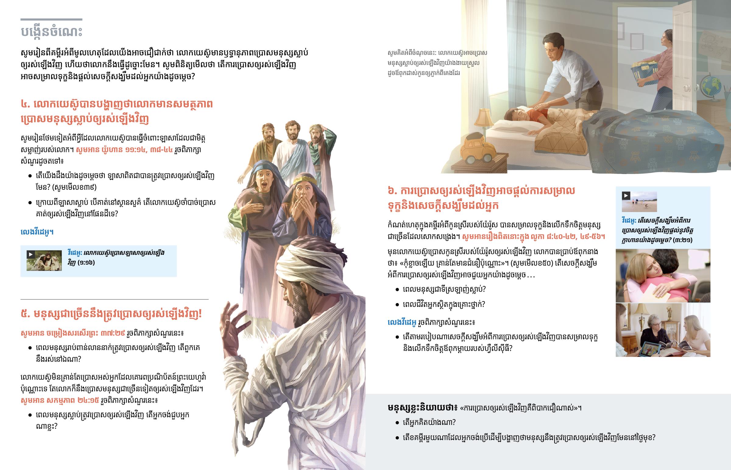 មុន​លោក​យេស៊ូ​ប្រោស​កូន​ស្រី​របស់​យ៉ែរ៉ូស​ឲ្យ​រស់​ឡើង​វិញ លោក​បាន​ប្រាប់​ឪពុក​នាង​ថា​៖ ​«​កុំ​ខ្លាច​ឡើយ គ្រាន់​តែ​មាន​ជំនឿ​ប៉ុណ្ណោះ​»។ (​សូម​មើល​ខ​៥០​) តើ​សេចក្ដី​សង្ឃឹម​អំពី​ការ​ប្រោស​ឲ្យ​រស់​ឡើង​វិញ​អាច​ជួយ​អ្នក​យ៉ាង​ដូច​ម្ដេច . . .