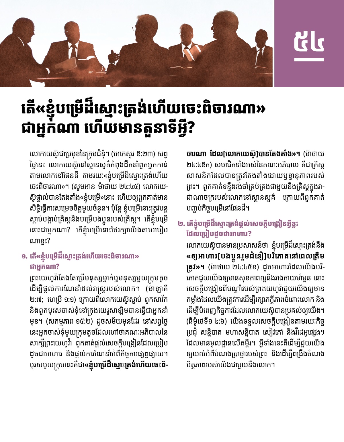 ១. តើ«ខ្ញុំបម្រើដ៏ស្មោះត្រង់ហើយចេះពិចារណា»ជាអ្នកណា?