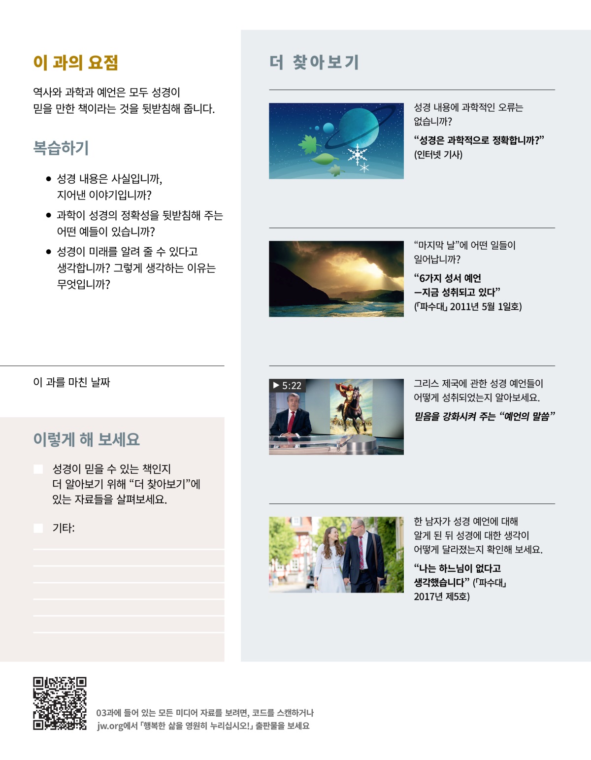 • 이 성경 구절을 볼 때, 성경이 믿을 만한 책이라는 생각이 들지 않습니까?
