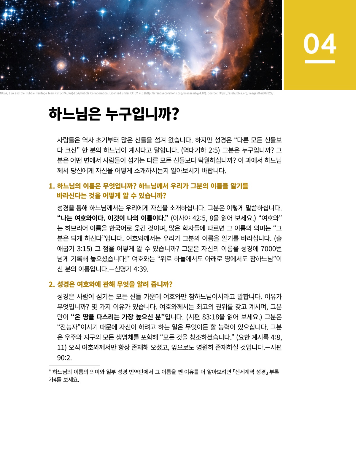 1. 하느님의 이름은 무엇입니까? 하느님께서 우리가 그분의 이름을 알기를 바라신다는 것을 어떻게 알 수 있습니까?
