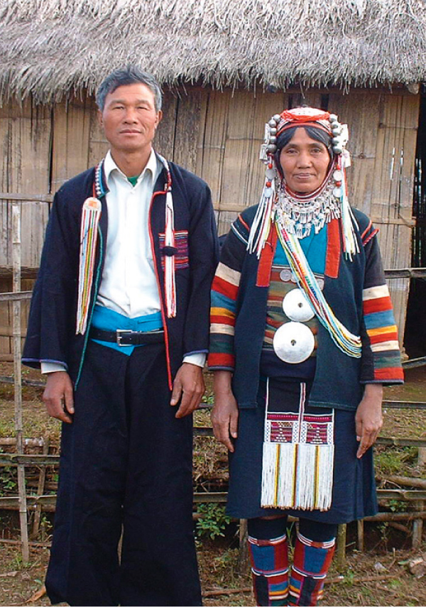친 주의 산지에 있는 회중들을 방문한 지역 감독자 굼자 노와 그의 아내 난루