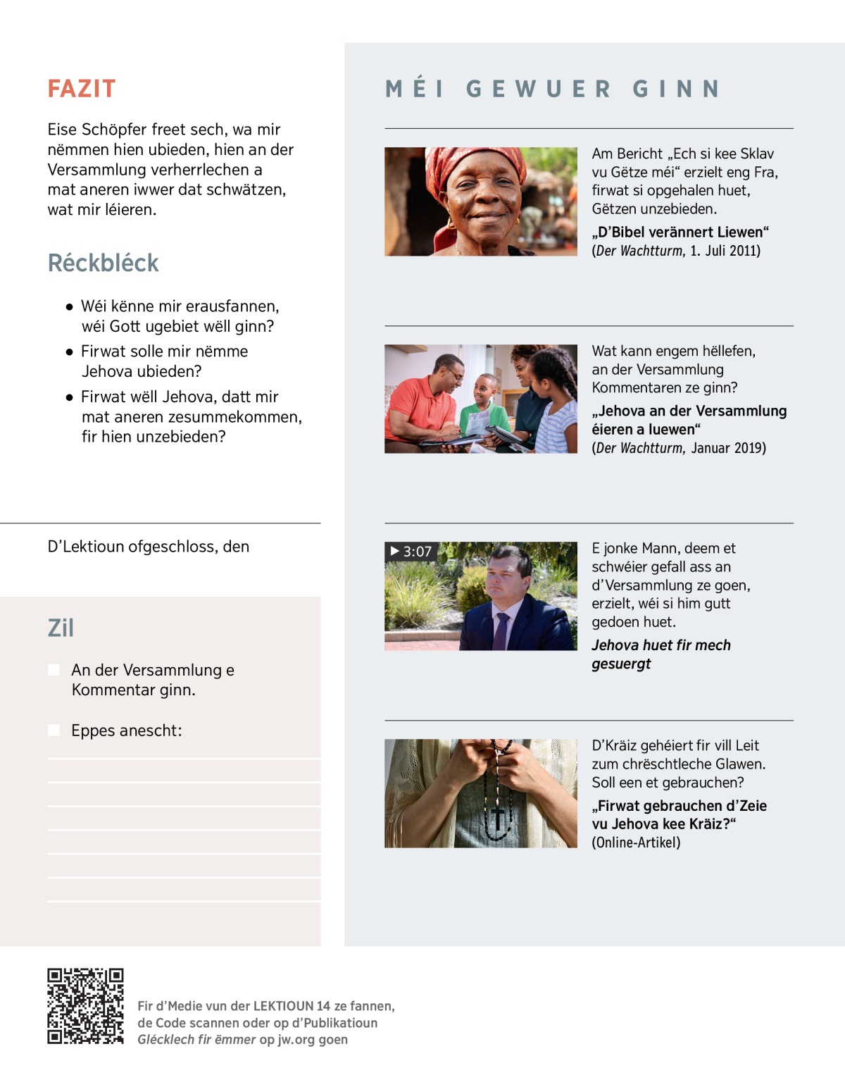 „Jehova an der Versammlung éieren a luewen“ (Der Wachtturm, Januar 2019)