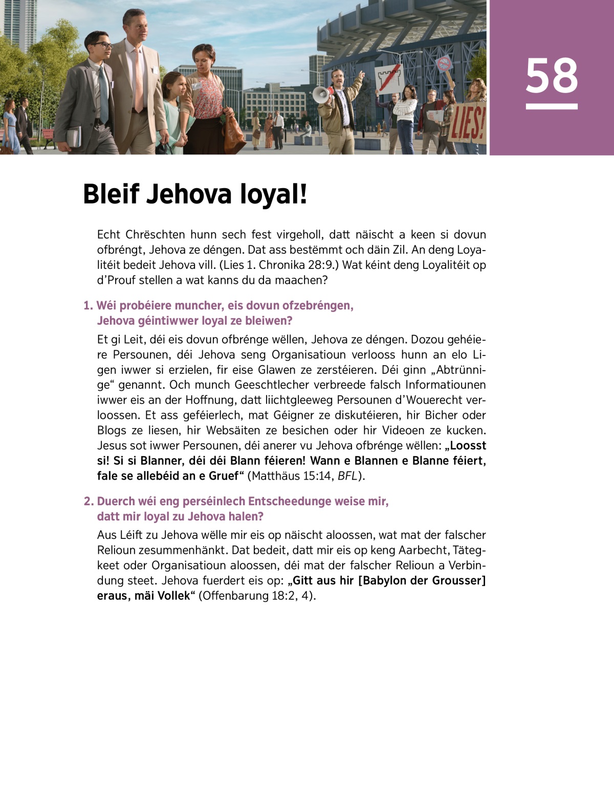 Entscheet dech esou, datt s du e rengt Gewëssen hues an een deng Loyalitéit géintiwwer Jehova kloer gesäit.