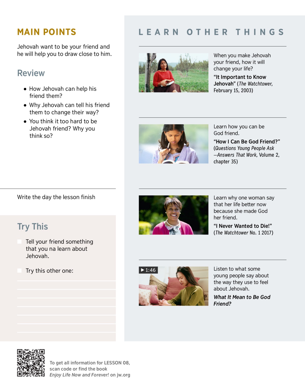 Jehovah want to be your friend and he will help you to draw close to him.