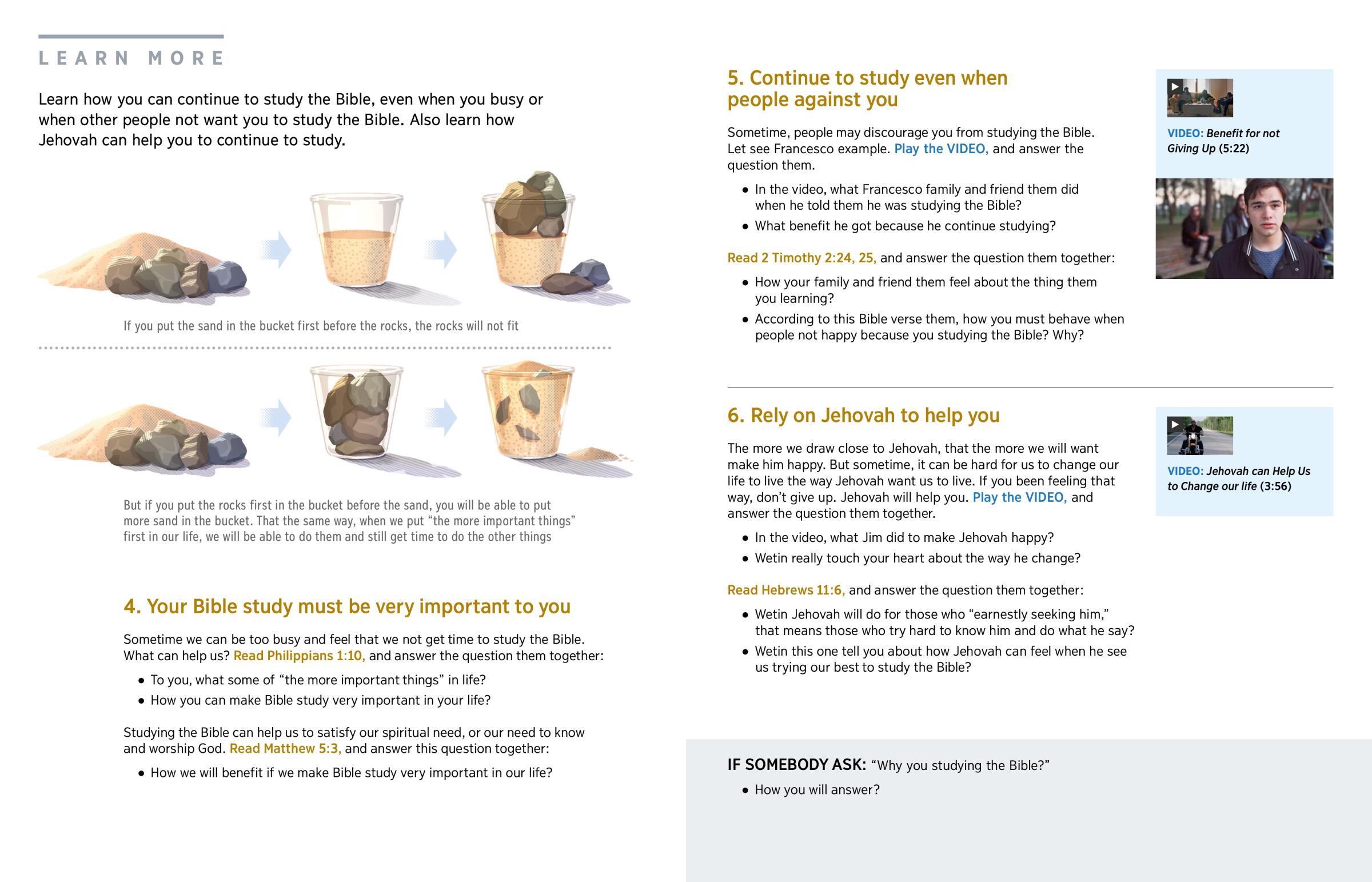 Learn how you can continue to study the Bible, even when you busy or when other people not want you to study the Bible. Also learn how Jehovah can help you to continue to study.