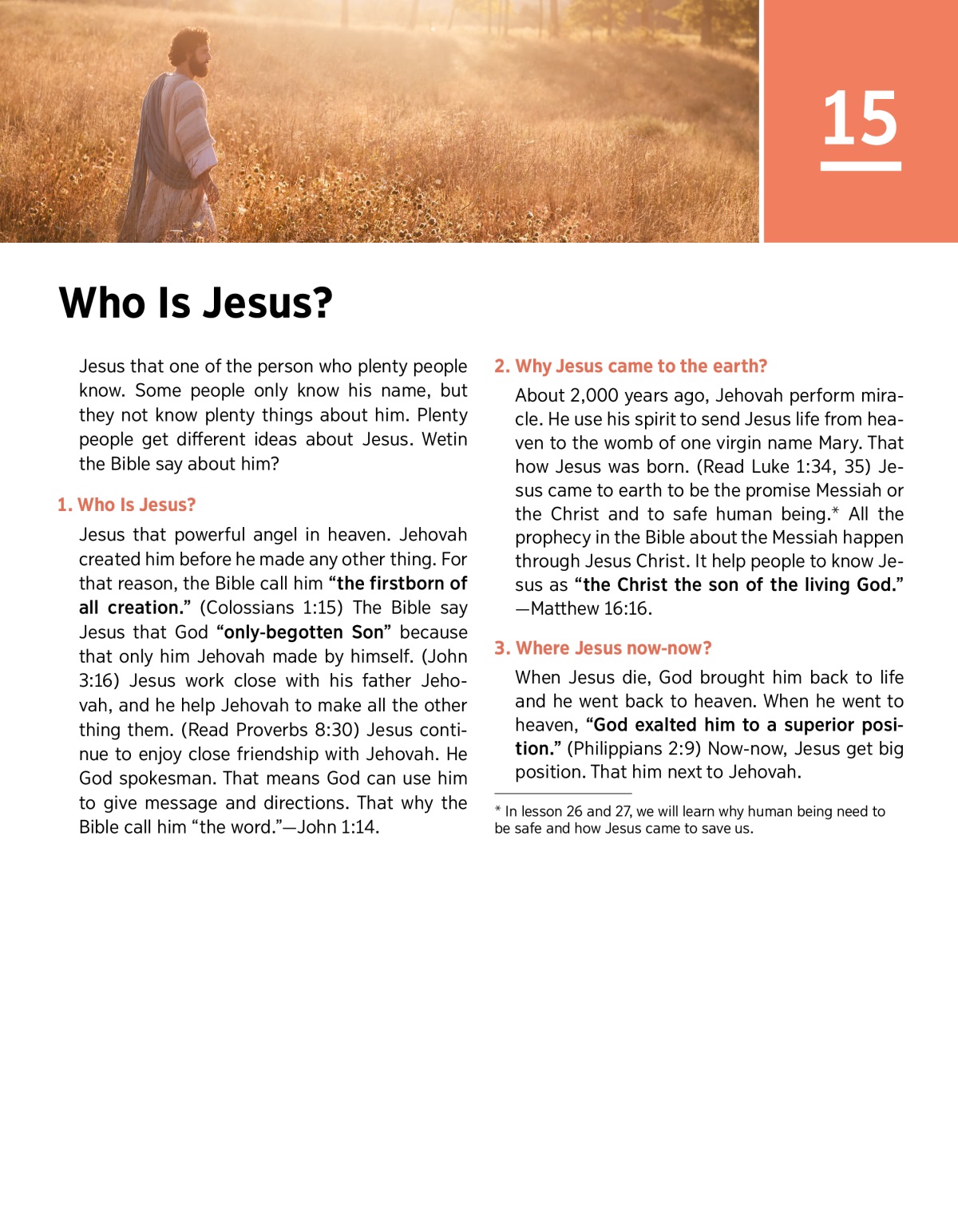 a In Lessons 26 and 27 we will learn why human being need to be save and how Jesus came to save us.