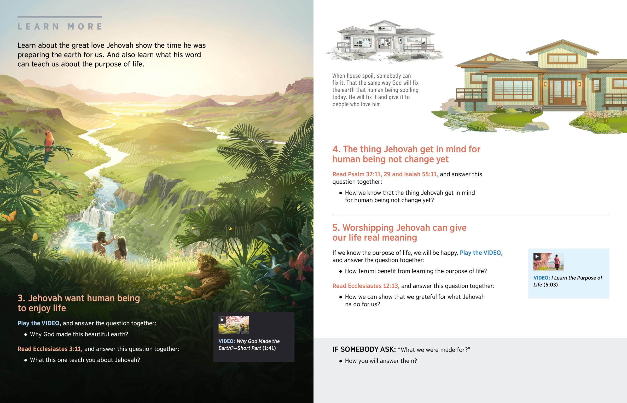 Learn about the great love Jehovah show the time he was preparing the earth for us. And also learn what his word can teach us about the purpose of life.