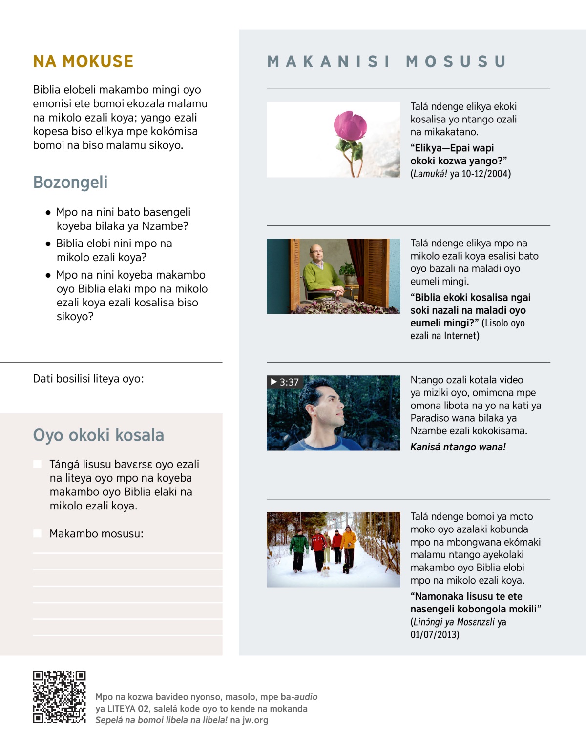 • Biblia elaki bomoi ya malamu na mikolo ezali koya