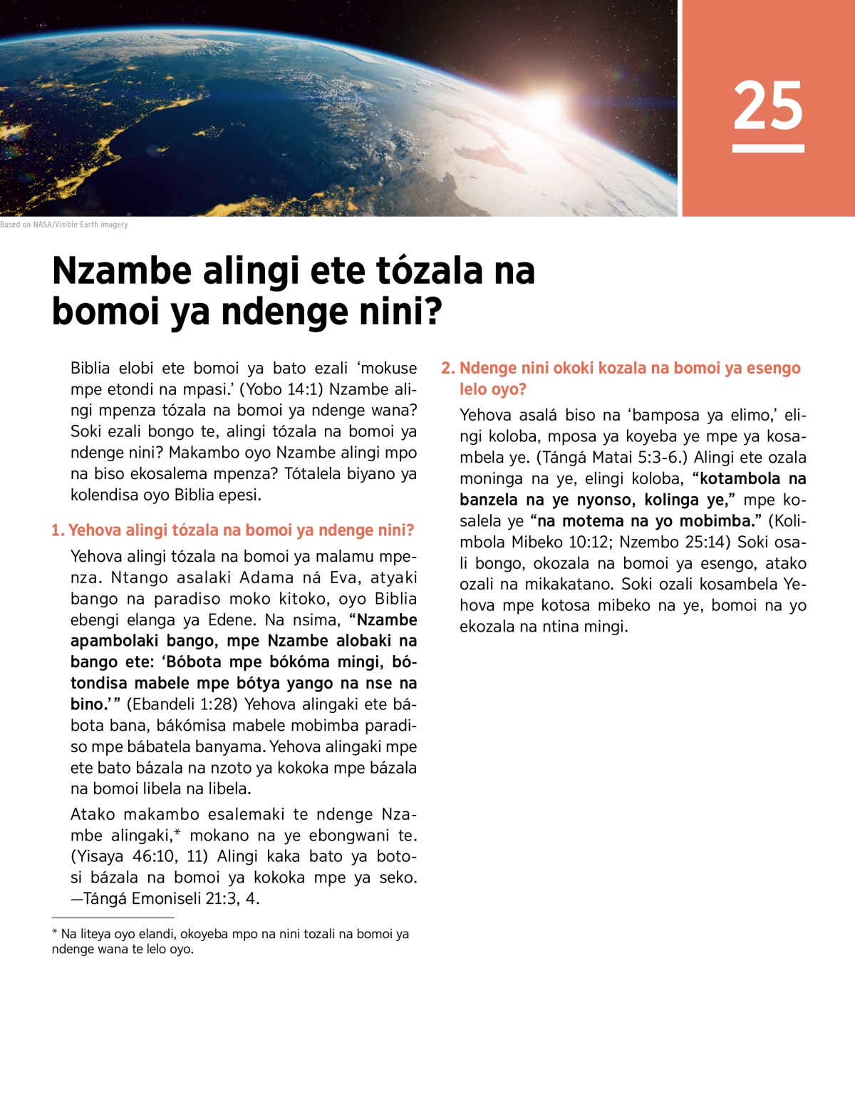 Talá ndenge Yehova abongiselá biso mabele na bolingo mpenza, mpe oyo Liloba na ye eteyaka biso na oyo etali bomoi.