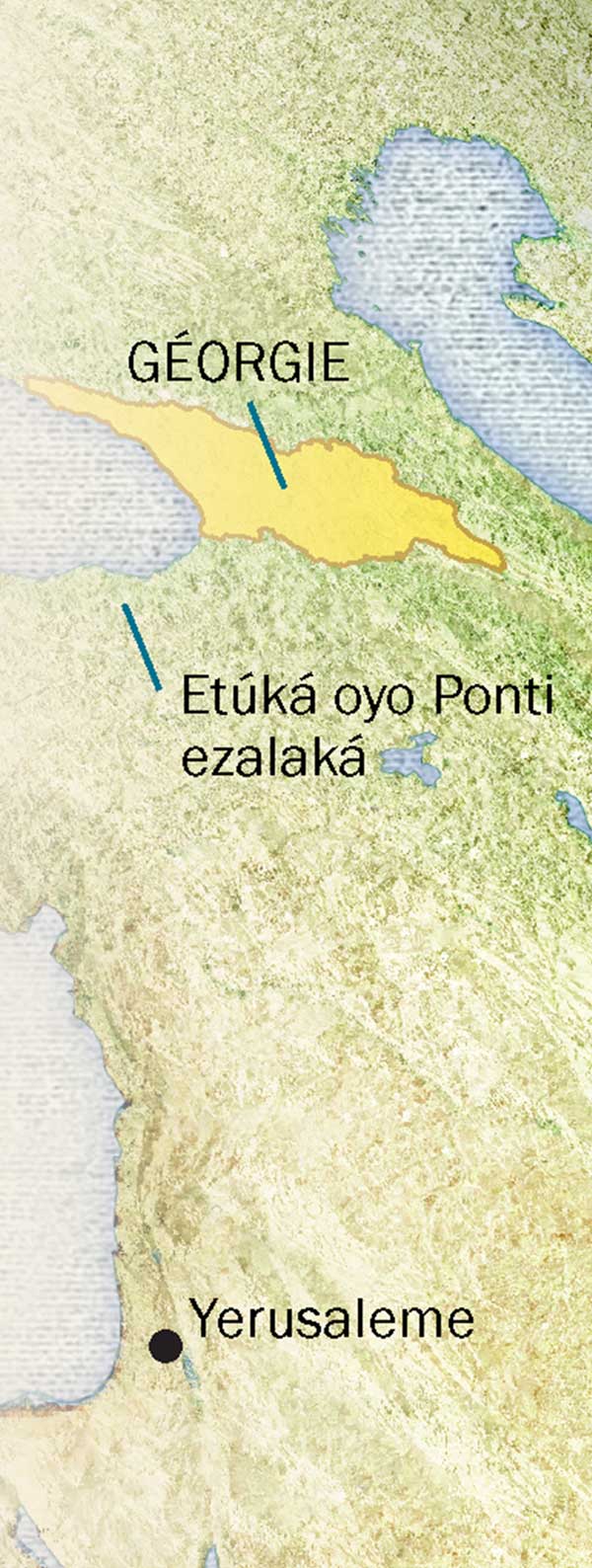 Ntango nini lingomba ya bokristo ekɔtaki na Géorgie? Tii sikoyo, bamoni ata makomi moko te ya mokili oyo elobeli mpenza likambo yango. Nzokande, mokanda ya Misala elobi ete Bayuda mosusu to baprozelite ya mboka Ponti bazalaki kati na bato oyo bayokaki nsango malamu na Yerusaleme na Pantekote ya mobu 33 ya ntango na biso. Ekoki kozala ete bapalanganisaki nsango yango ntango bazongaki na Ponti. Emonani ete masangá ya bokristo ezalaki na mboka Ponti na mobu soki 62 ya ntango na biso. Na siɛklɛ ya liboso, Ponti ezalaki na etúká oyo ezwami lelo na nɔrdi-ɛsti ya ekólo Turquie, pene ya ekólo Géorgie.​—Misala 2:9; 1 Petro 1:1.