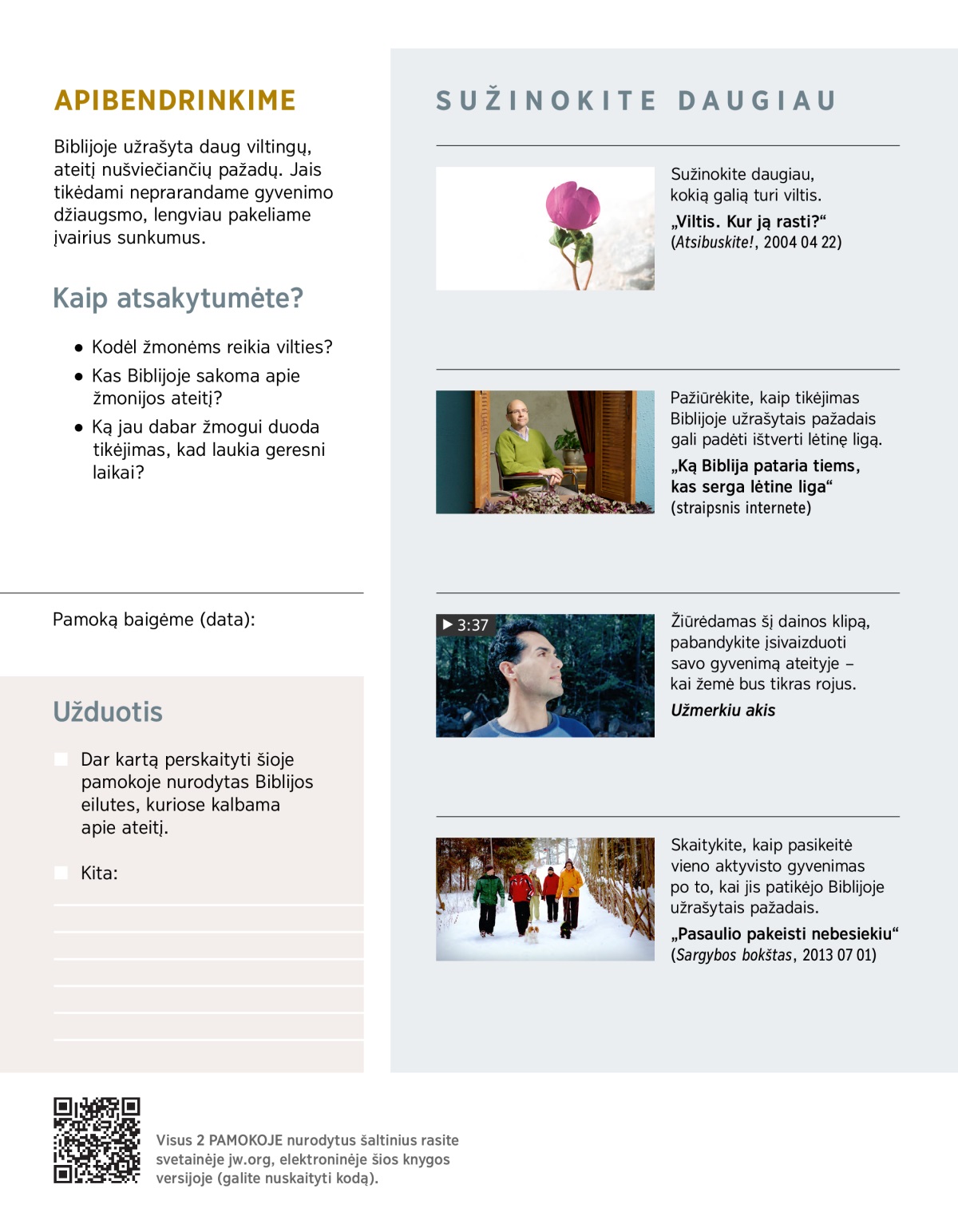 Pažiūrėkime, kokių pažadų, nušviečiančių ateitį, yra Biblijoje ir kaip tikėjimas jais keičia žmogaus gyvenimą į gera.