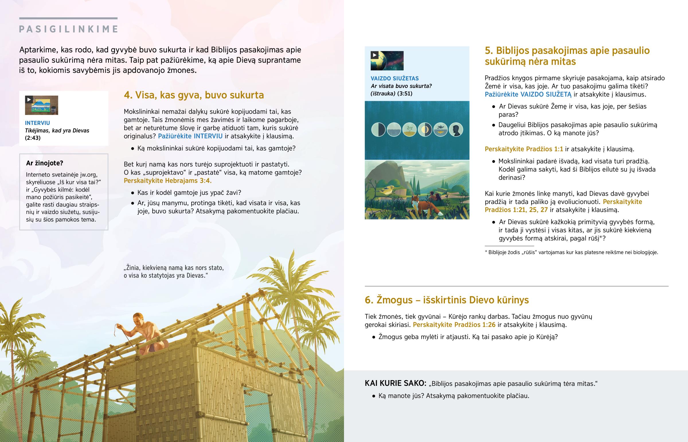Interneto svetainėje jw.org, skyreliuose „Iš kur visa tai?“ ir „Gyvybės kilmė: kodėl mano požiūris pasikeitė“, galite rasti daugiau straipsnių ir vaizdo siužetų, susijusių su šios pamokos tema.