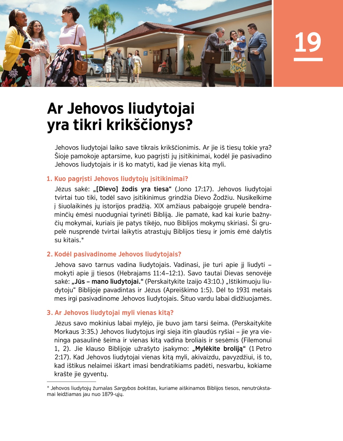 Susipažinkite su Jehovos liudytojais iš arčiau ir sužinokite, kodėl juos galima laikyti tikrais Jėzaus sekėjais.