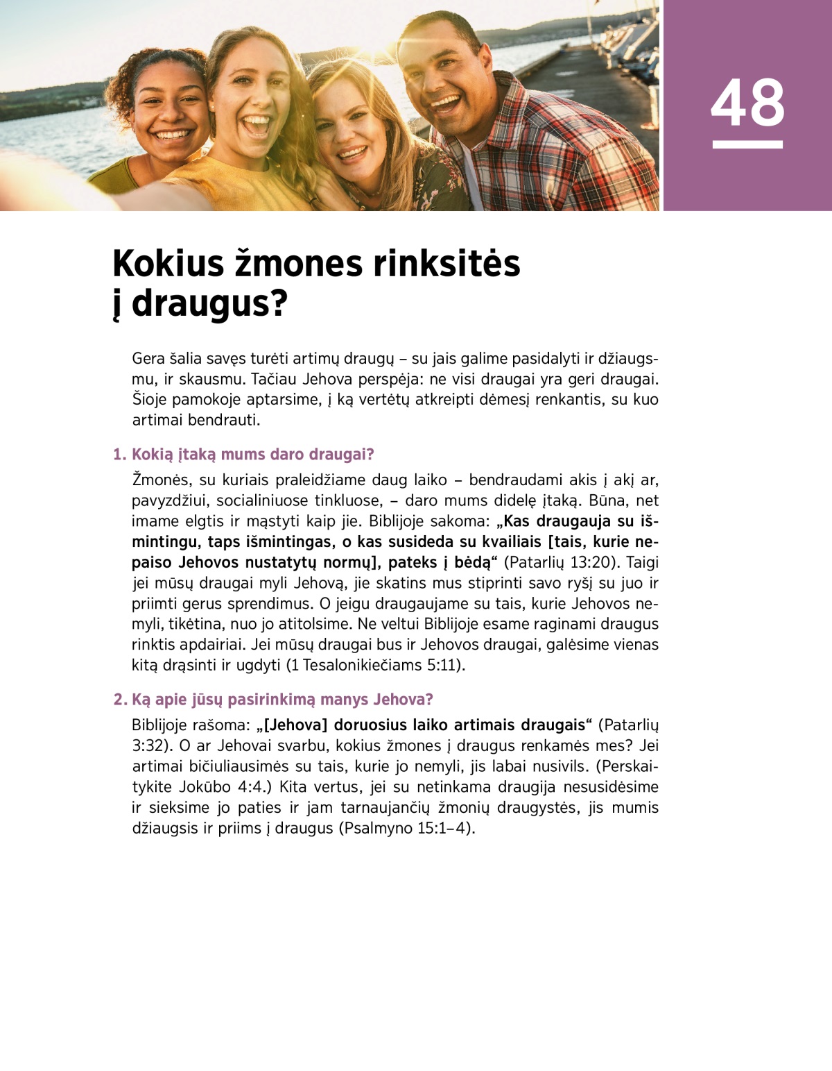 Gera šalia savęs turėti artimų draugų – su jais galime pasidalyti ir džiaugsmu, ir skausmu. Tačiau Jehova perspėja: ne visi draugai yra geri draugai. Šioje pamokoje aptarsime, į ką vertėtų atkreipti dėmesį renkantis, su kuo artimai bendrauti.