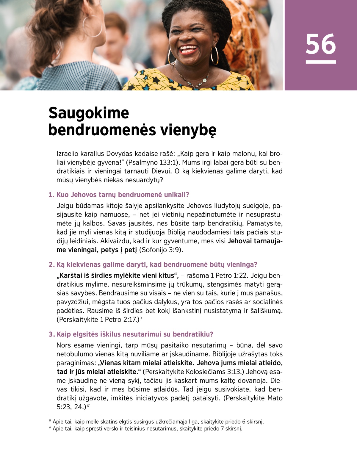 Izraelio karalius Dovydas kadaise rašė: „Kaip gera ir kaip malonu, kai broliai vienybėje gyvena!“ (Psalmyno 133:1). Mums irgi labai gera būti su bendratikiais ir vieningai tarnauti Dievui. O ką kiekvienas galime daryti, kad mūsų vienybės niekas nesuardytų?