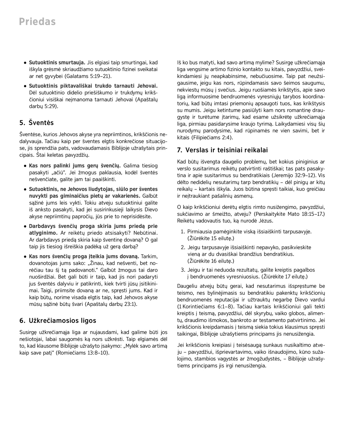 Kad būtų išvengta daugelio problemų, bet kokius piniginius ar verslo susitarimus reikėtų patvirtinti raštiškai; tas pats pasakytina ir apie susitarimus su bendratikiais (Jeremijo 32:9–12). Vis dėlto nedidelių nesutarimų tarp bendratikių – dėl pinigų ar kitų reikalų – kartais iškyla. Juos būtina spręsti taikiai, kuo greičiau ir neįtraukiant pašalinių asmenų.